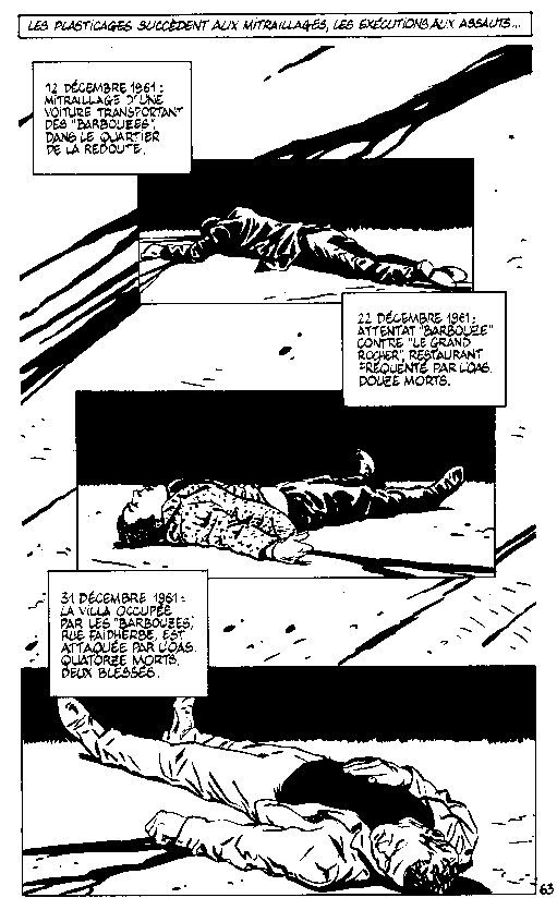 Deux manifestations pacifiques mais interdites à Paris ont terni et marqué la fin de la Guerre d'Algérie. Celle du Métro Charonne du 8 février 1962, celle du 17 octobre 1961. Les deux ont été réprimées dans le sang par le Préfet Maurice Papon, quelques mois ou semaines avant les accords d'Évian débouchant sur l'indépendance d'Algérie. D'un côté les forces de gauche, Parti Communiste en tête, s'insurge contre les attentats de l'Organisation Armée Secrète (OAS) et la Guerre d'Algérie. D'un autre, la Fédération de France du Front de Libération Nationale (FLN) appelle à manifester contre le couvre-feu qui est imposé aux « Français musulmans d'Algérie ». Cinquante ans après, plusieurs albums ont illustré le massacre du 17 octobre 1961 ayant fait des dizaines, voire des centaines de victimes.
